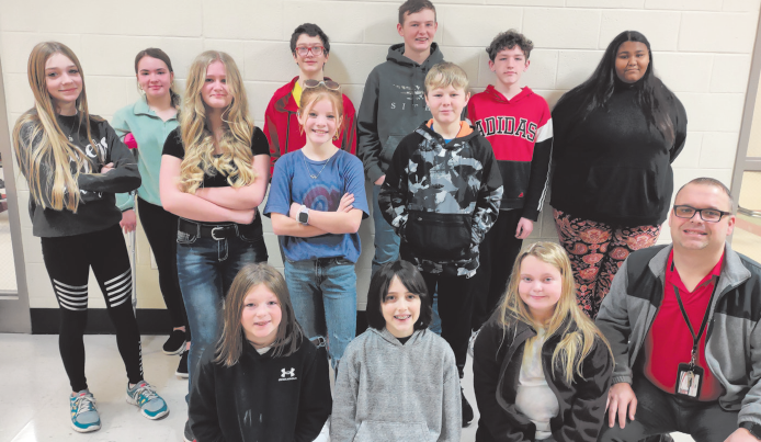 Front Row: L-R Dr. Josh Holtcamp, principal of WMS, Bristyl Tate, Axton Robertson, Easton Womack, Faith Eddington. Back Row: L-R Makenzie Daniel, Brooke Parker, Cameron Griffith, Kandace Morrison, Chassidy Bowman,…