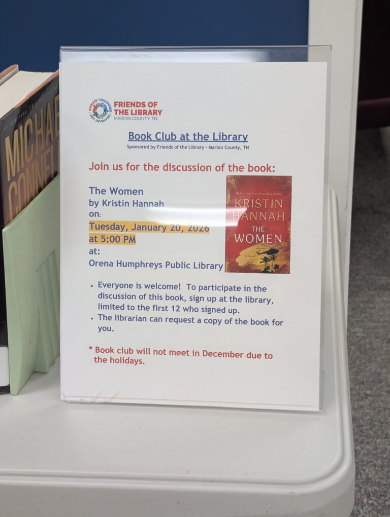 JARRETT GOODMAN Staff Writer Community members from Whitwell have gathered around the table within Orena Humphreys Public Library for this month’s book club event, featuring Kristin Hannah’s novel “The Women.”…