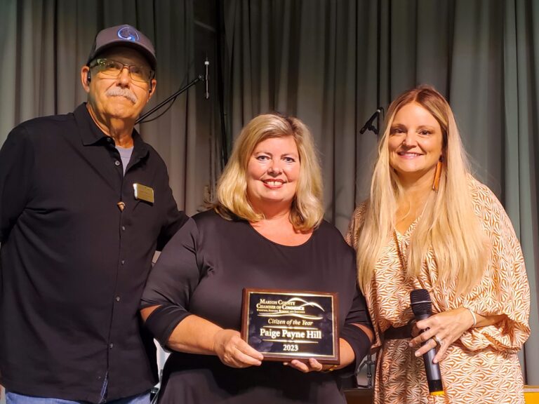 DUANE SHERRILL Contributor Hugs, tears and a standing ovation followed the announcement this past Friday evening at the Marion County Chamber of Commerce Annual Banquet that Paige Payne Hill…