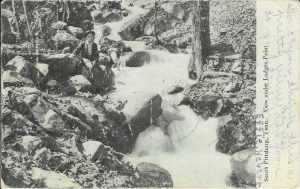 This 1908 postcard may be Cleavets Spring, or Cleavets may be a mineral water found here. Carolyn Millhiser once owned Lodge’s Point, for it was her great-grandfather Joseph Lodge who started Lodge Manufacturing. When Carolyn’s father, C. R. “Dick” Kellerman, was a child, the family would spend summers at Lodge’s Point. C. R. Kellerman Sr. would carry milk or bread up from the valley, depending on the signal from home-a white sheet on the line for milk or a blue blanket for bread. The Joseph Lodge extended family of children and grandchildren summered over at cottages on the point until about 1920.