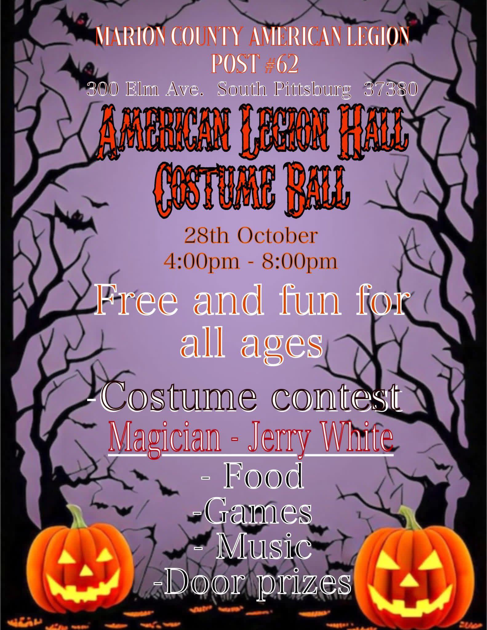 The American Legion will be hosting its first annual Costume Ball on Tuesday, October 28 from 4 p.m. to 8 p.m. at the American Legion Hall on 300 Elm Avenue