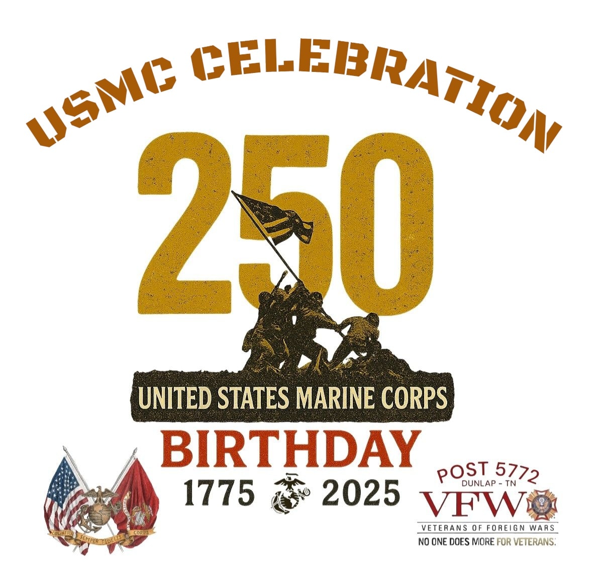 Members of Dunlap’s VFW Post 5772 will be hosting a Cake Cutting Ceremony dedicated to the 250th birthday of the United States Marine Corp on Saturday, November 8 at 12