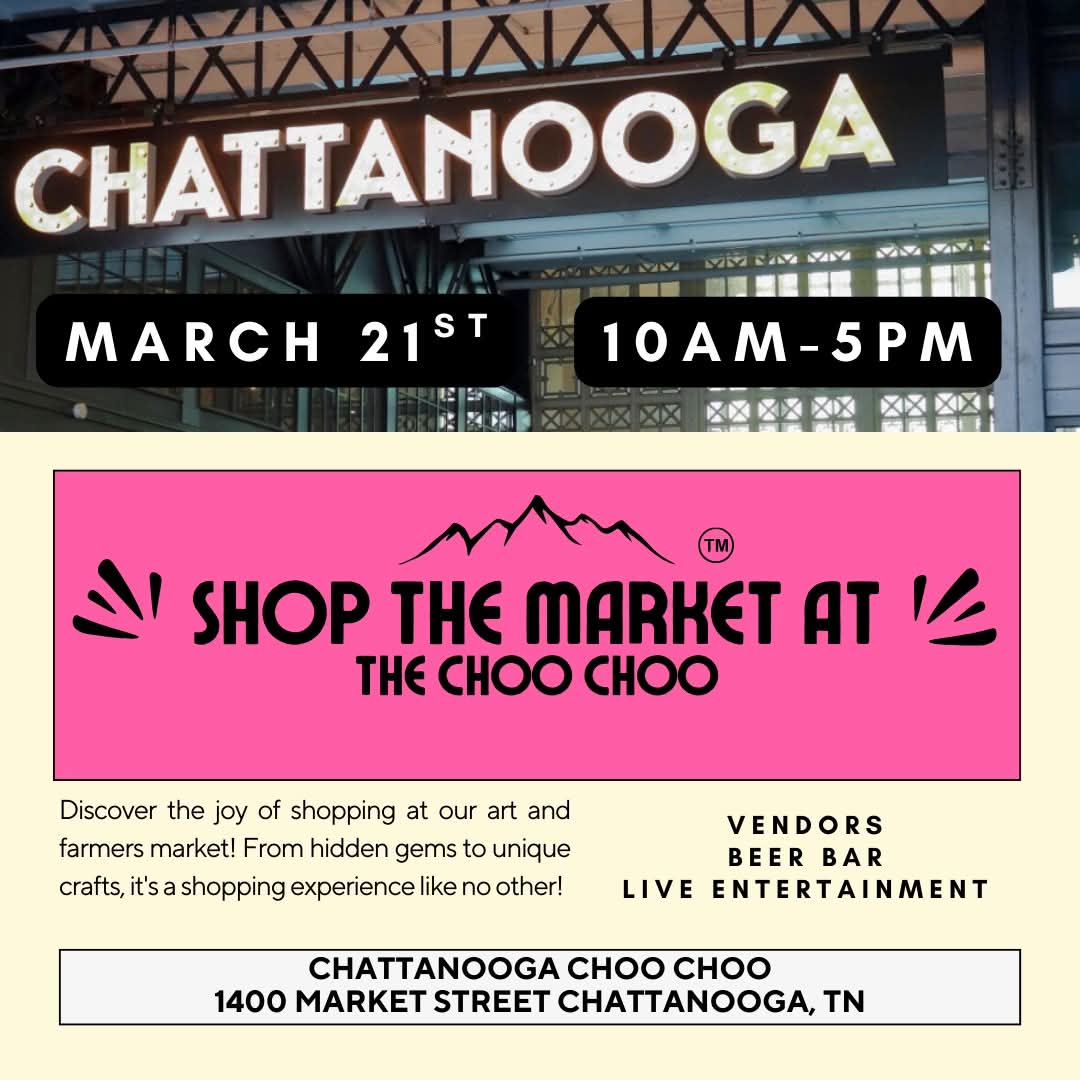 Chattanooga’s Shop the Market at The Choo Choo is scheduled for Saturday, March 21 from 10 a.m. to 5 p.m. ET (9 a.m. to 4 p.m. CDT).