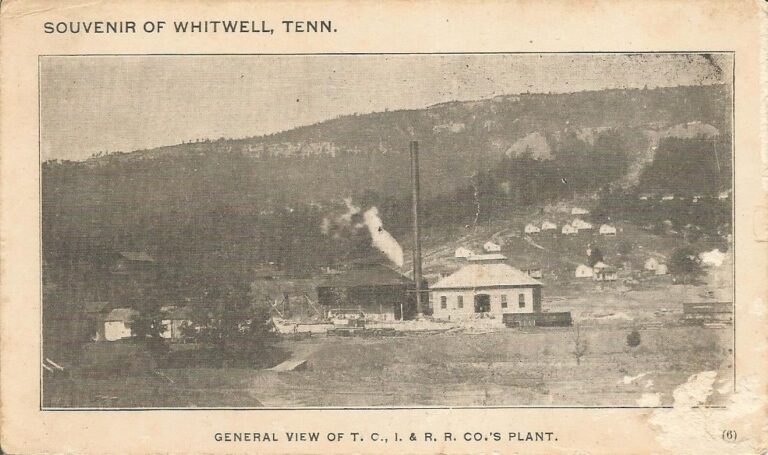 Home Memories of Marion Tennessee Coal Iron and Railroad Company Plant, 1908 Tennessee Coal Iron and Railroad Company Plant, 1908April 17, 2025 This image shows the Tennessee Coal Iron and Railroad Company’s plant at Whitwell in 1908. The large building in the foreground with the… Login to continue reading Login Sign up for complimentary access Sign Up Now Close Previous Post Perry Franklin Louden Sr., 82 Next Post Dava Jane Raulston Quarles, 71