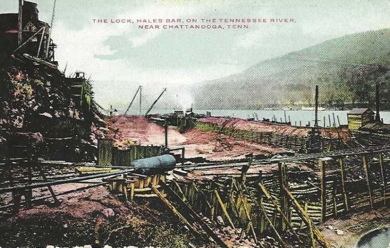 This postcard dates from the spring of 1909 and shows the construction of the lock on Hales Bar Dam at Guild. Early postcards… Login to continue reading Login…