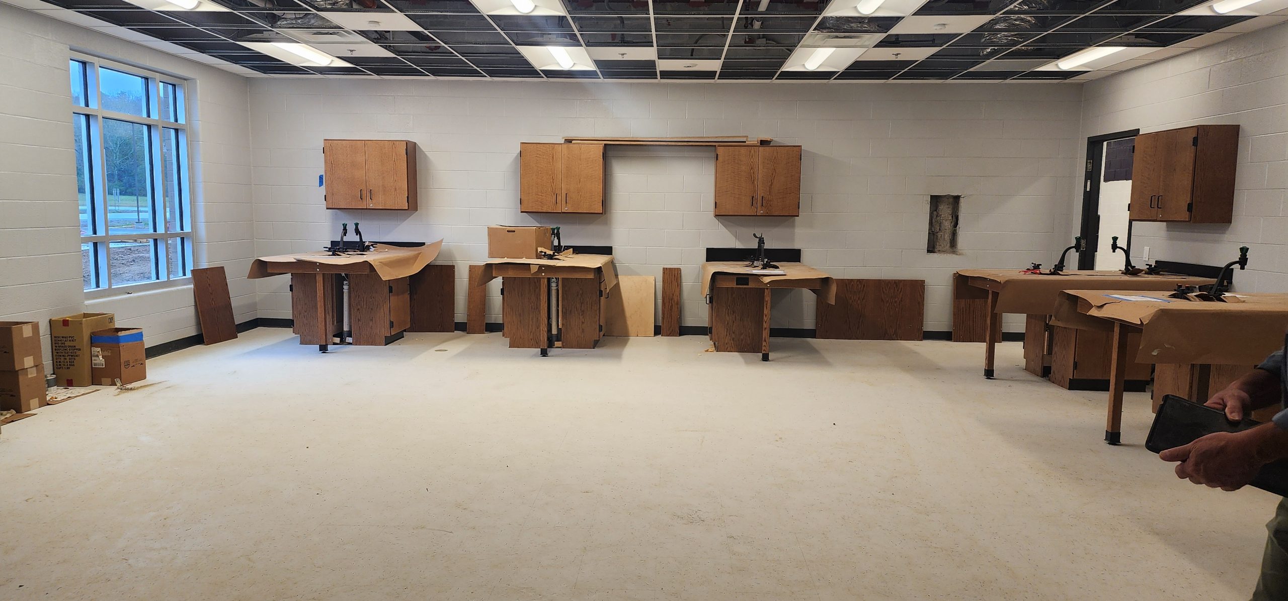 The band room is situated inside the building adjacent to the auditorium, and the gymnasium will have bleachers on both sides, a feature not present in the current JMS facility. The installation of gym flooring is expected to be completed in the upcoming weeks. Plans are underway for an open house for the public in July, pending confirmation, as well as a separate event for students and families only. According to Mr. Gilliam, who is heading the construction efforts, they are still on track for completion in August.
