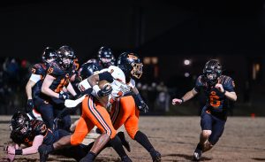 Mr. Football finalist Dayon Cooper followed in the second quarter, finishing off a 10-play drive with a 6-yard touchdown. Cooper sparked the offense throughout the night, rushing for 95 yards — including a key 44-yard burst in the fourth quarter.