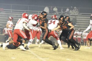 The Warriors first got on the board with just five seconds remaining in the half on a drive that took only 20 seconds off the clock when Tilton Pickett found Sam Pickett for a 52-yard touchdown reception for a 7-0 lead. Tilton went an efficient 7-for-11 for 98 yards and a touchdown for the night. The rest of the scoring was left up to the Warriors’ impressive ground game that racked up 198 yards in total, with contributions from EJ Wilson (83), Sam Pickett (64), Brody Leonard (18), and Ashton Martin (37).