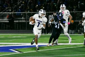 Mr. Football finalist Dayon Cooper followed in the second quarter, finishing off a 10-play drive with a 6-yard touchdown. Cooper sparked the offense throughout the night, rushing for 95 yards — including a key 44-yard burst in the fourth quarter.