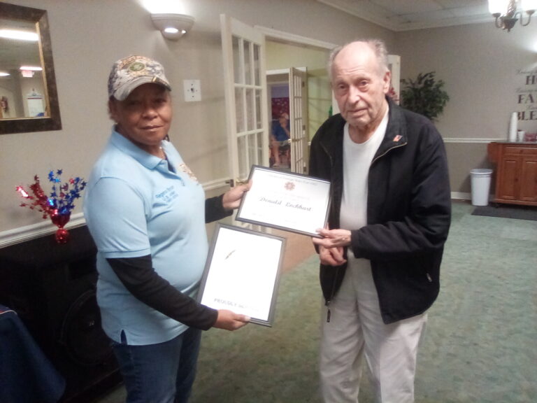 Jasper Memorial Post 6362 of the Veterans of Foreign Wars is proud to announce that Judith Johnson of Signature Healthcare Center in South Pittsburg has been named Veteran of the Month. Judith is a former U.S. Marine Corps member. We thank her for her service to our nation to ensure freedom and democracy for all Americans. She was presented the VFW’s certificate of Appreciation by Post Commander Bob Collins.
