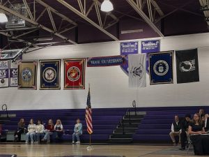 Marion County High School hosted its Veterans Day Program with students, faculty, and members of the Sequatchie Valley Veterans Honor Guard alike gathered in the school gymnasium to commemorate those who served the country. During the program, a folding of the American flag was demonstrated to those in attendance, showcasing each fold conducted and how everyone represents and pays tribute to veterans and what the nation stands for. Vice President of the Honor Guard Stan Brown explained all the folds and their meaning during the presentation. Local resident and veteran Brandon Headrick and his daughter Alaina also performed the song “Travelin Soldier” by Bruce Robison during the program, providing a musical touch of appreciation towards all veterans and what they did in their time of service.